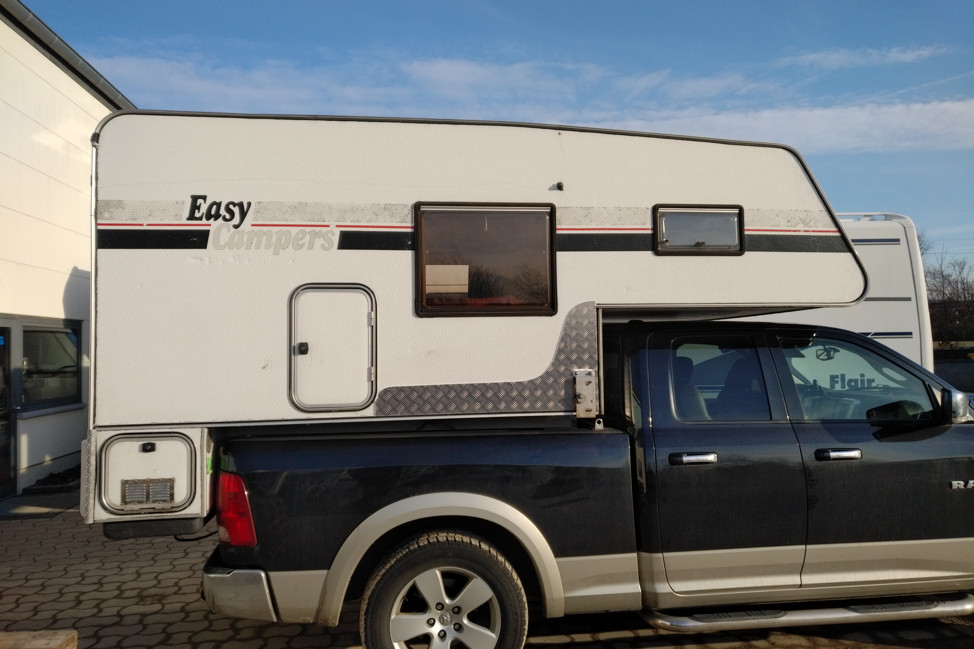 Irgendwann (2015 meine ich) auf dem Streetmag Ami Treffen auf Hannovers Schuetzenplatz hab ich dann nen RAM mit ner kleinen amerikanischen Wohnkabine gesehen, meine Freundin war vom grosszuegigen Innenraum gleich begeistert. (Wir durften einmal druchklettern und uns alles anschauen).