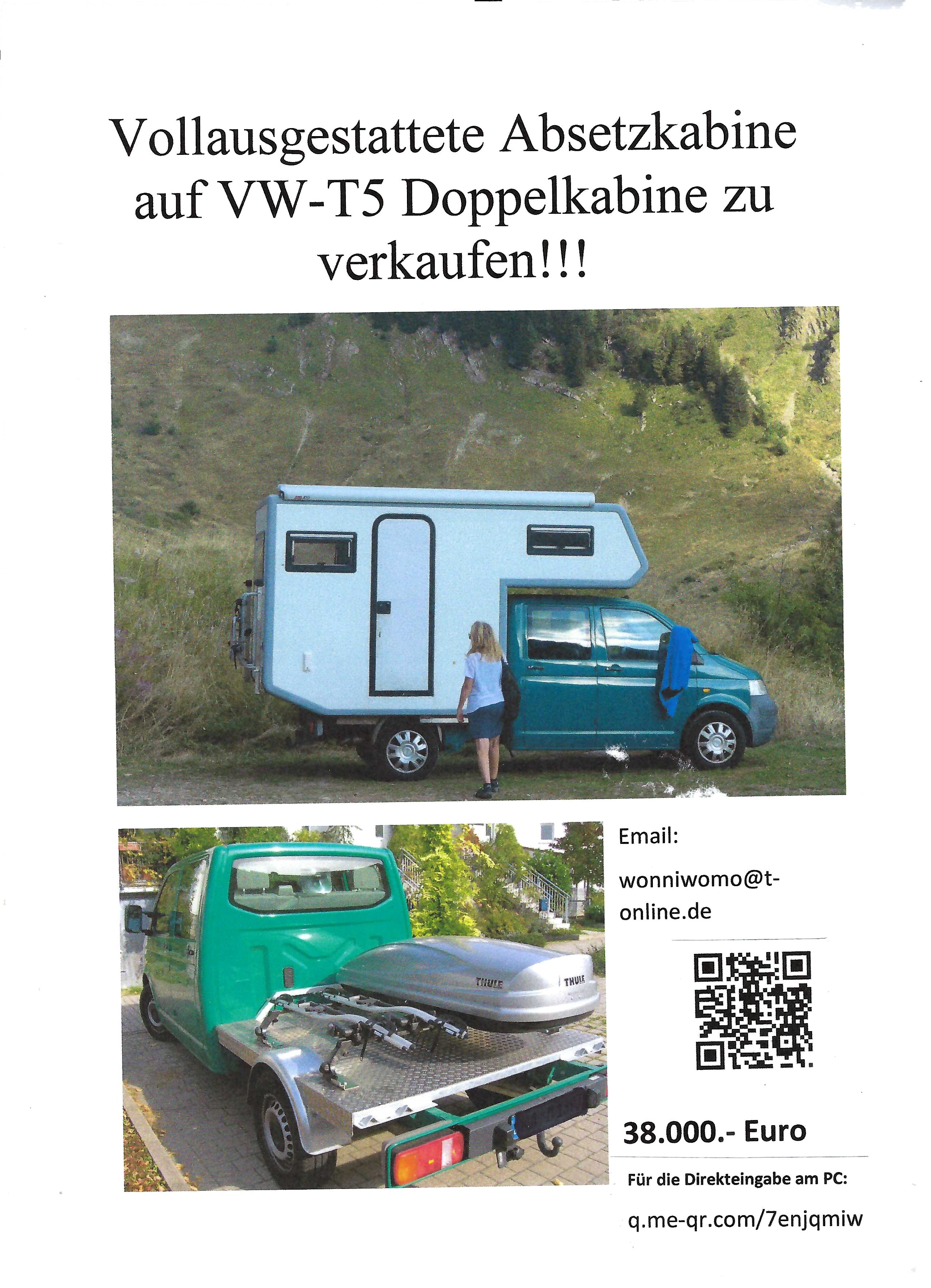 ich verkaufe aus familiären Gründen meinen geliebten VW-T5 Doppelkabine mit Absetzkabine.